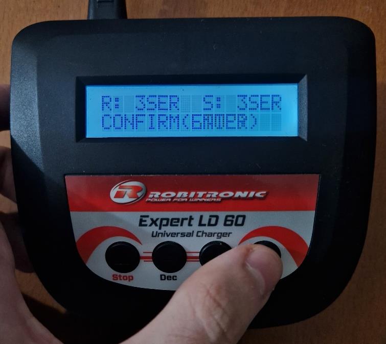 4) Now press the start button and keep it pressed until the charger check the battery and ask for a confrmation.