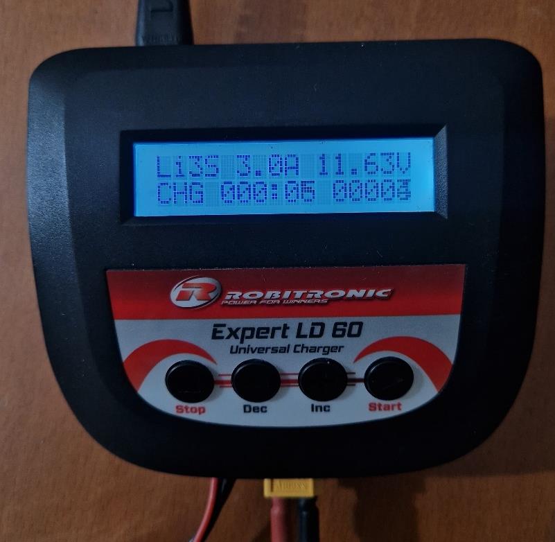 5) When the charging process will be completed the charger will make a long sound to indicate that the battery is full. At this point you can press stop ad simply detach the battery. If you need to stop the charging earlier, use the stop button and then detach the battery.