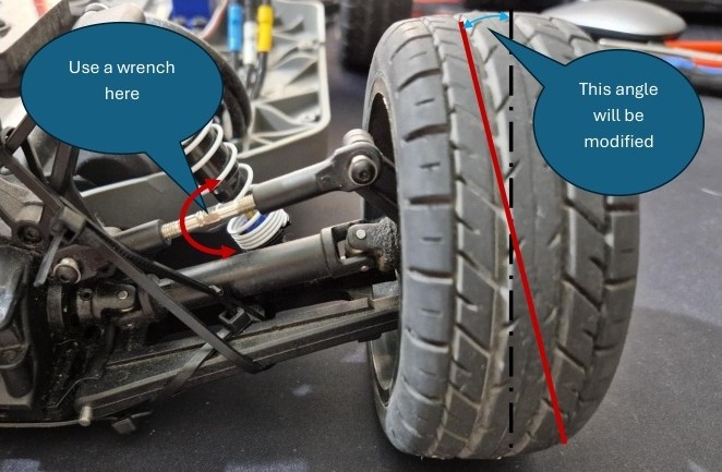 This operation is possible on all the four wheels. If they are brought outward vertically so negative camber (“legs wide”) we have more grip and more friction. An angle between 0.5° and 1.5° is good. Negative camber improves handling by keeping the tire perpendicular to the road as the car rolls; ensuring that the tire's contact patch is evenly loaded.Without adequate negative camber the tire would load the outer portion of the tire and produce less grip. Adding too much negative camber will reduce the peak tire grip during straight-line acceleration and braking.