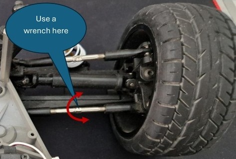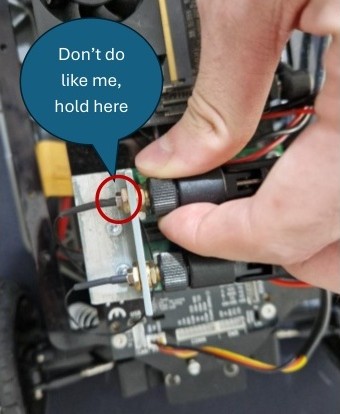 Remove the 3x15 button-head cap screw from the steering link under the chassis.