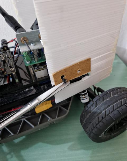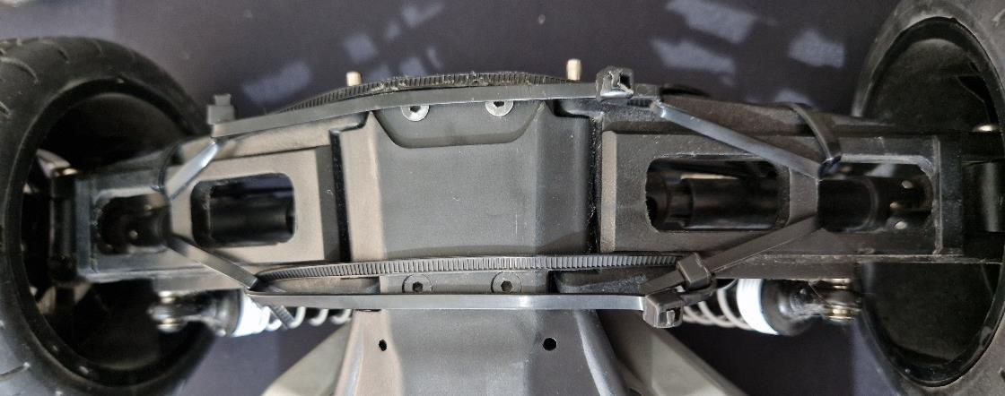 To solve this problem efectively, it is necessary to rearrange the chassis and change the suspension system. For the moment what has been done is to fx the suspension system using cable ties.