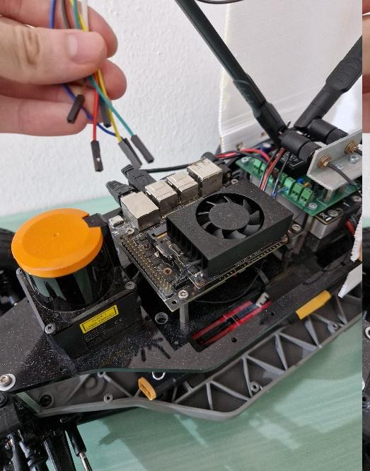 9) And 11) are displayed below. PAY ATTENTION. On the right we have the connector for the Jetson. The red cable goes to 12V and the black cable to GND. On the left we have the power supply of the LiDAR. Brown cable to 12V and blue cable to GND.