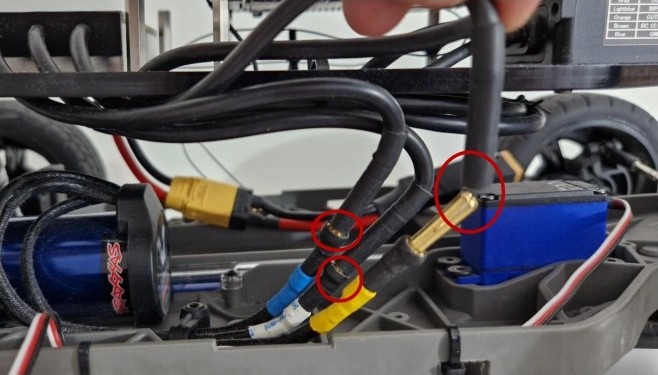 4) Connection to the motor. It does not matter in which order you connect the three cables. The only “bad” thing that can happen is that the motor (and so the wheel) will start to spin in the wrong direction. To correct this behaviour just fip two of them randomly. This will change the direction of rotation of the magnetic feld of the motor, and it will run in the correct way (you should study electric motor by the way. Beautiful subject if you don’t need to do an exam on it)